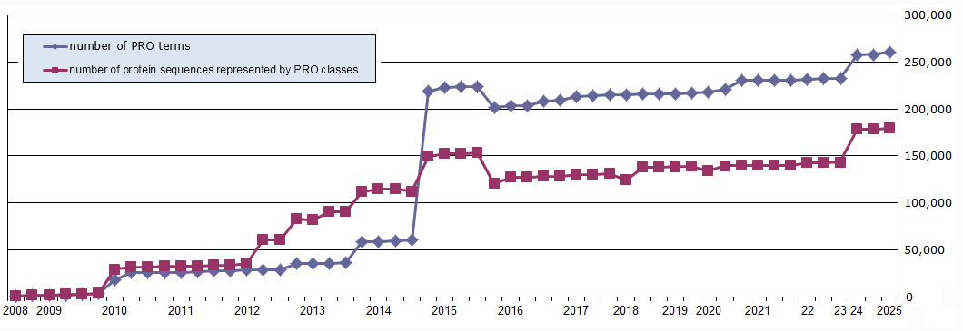 current release 72.0 -- 260,944 PRO terms that are mapped to 180,329 UniProt protein sequences |